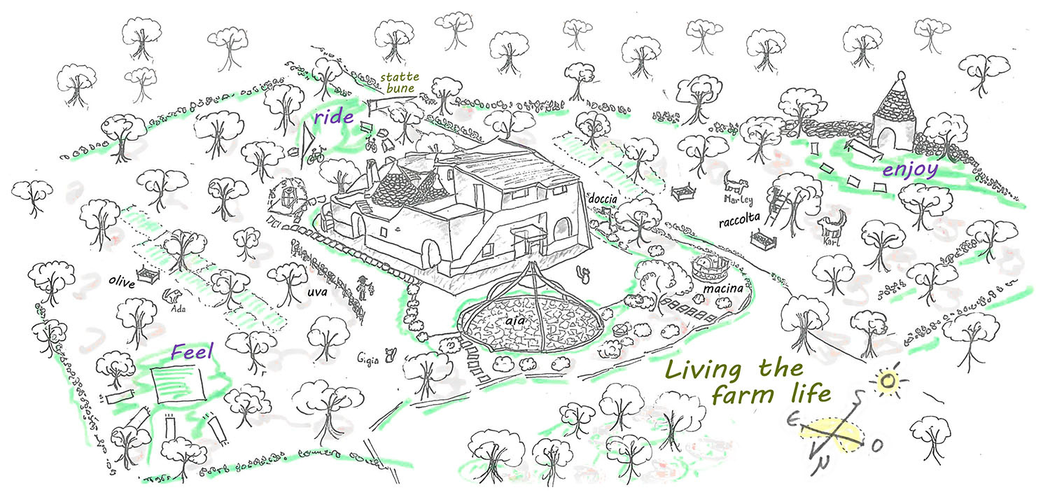 Come and discover our agriturismo, an authentic retreat in the countryside of Alberobello: a small trulli farm, reimagined over the years and restored to welcome guests in search of beauty, nature, culture, and slow tourism.