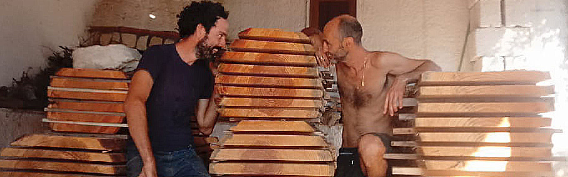 In June 2024, after having to cut down four pines and two enormous fir trees that were too close to the trulli, we immediately began thinking about how we could recover them and give these magnificent presences a new soul.With great care, the trunks were sawn into plank
